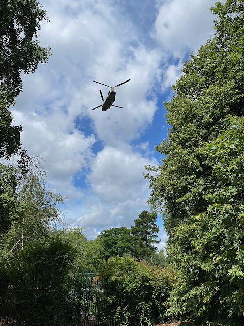 A helicopter flies over St. Regent's Park